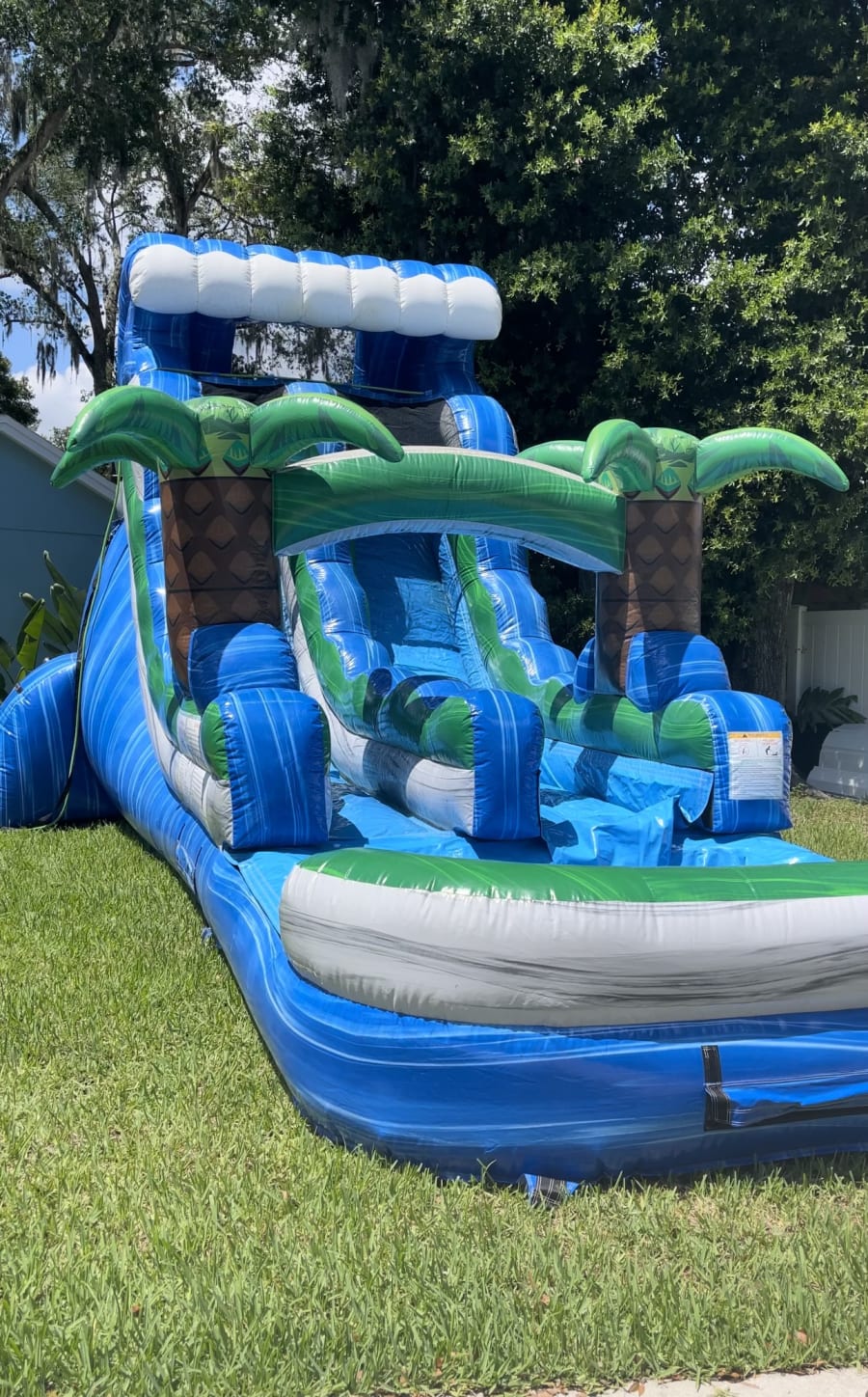 Surf up to the Tropical Wave! The theme along with the soothing color scheme gives this inflatable slide rental a great addition to the upcoming children birthday party or for a weekend in the sun. The incoming wave at the top brings excitement as children or adults race to the peak for a thrilling slide down. We provide inflatable slide rentals in Plant City, Lakeland, Valrico, Seffner, Brandon and the surrounding area. Our slides are sturdy and anchored on each side assuring safety. Book today as they become reserved quickly.
